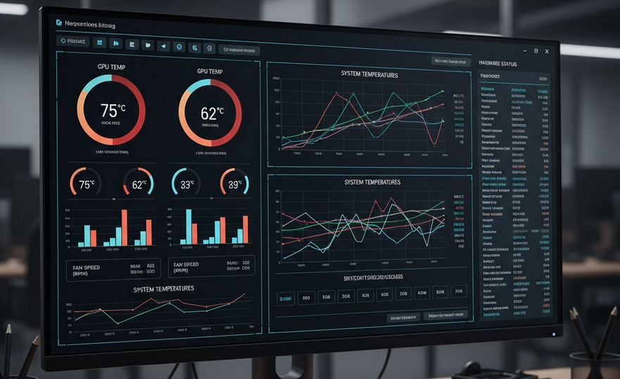 A hőmérséklet figyelése fontos. Használjunk monitoring szoftvereket: HWiNFO64, MSI Afterburner, Core Temp. Ezek valós időben mutatják a hőmérsékleteket.
